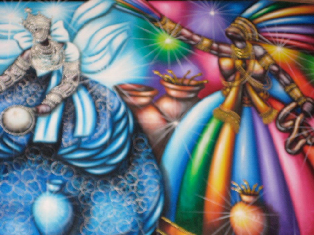 “Orixas. I took a picture of these paintings in the market across the Elevador Lacerda in Salvador, Brazil. If anyone knows the name of the artist I would love to give him/her credit. What I love about the Orixas is the subversive nature of their presence in Latin American culture. Imagine being dragged from your home, raped, tortured, and basically treated worse than an animal together with people from a vast continent whose languages you don’t understand. Dragged across the ocean, your identity, beliefs, language beaten out of you so you could bow to the cross while being whipped in the back. Imagine building nations with your bloody hands and sweat. Being told you are ugly, stupid, not even human for generations. Despite all that horror it’s so beautiful to see traces and powerful symbols of African culture throughout the region. Maybe the names are pronounced differently but the essence is there! Axé!”